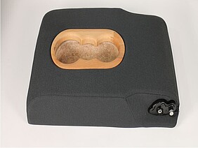 Mit Stoff bezogene PKW-Mittelarmlehne aus Holz. Bild: